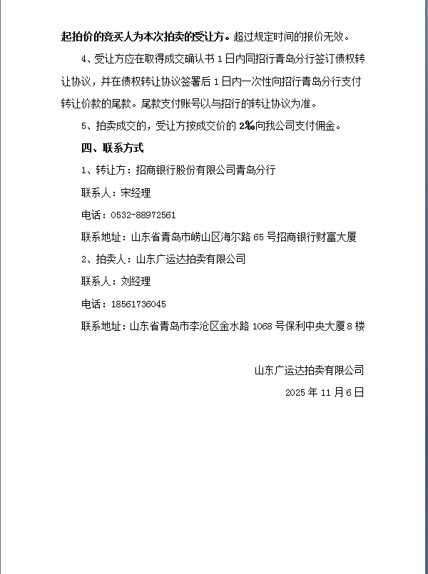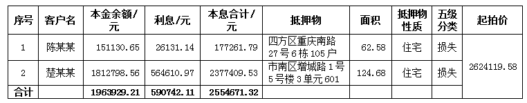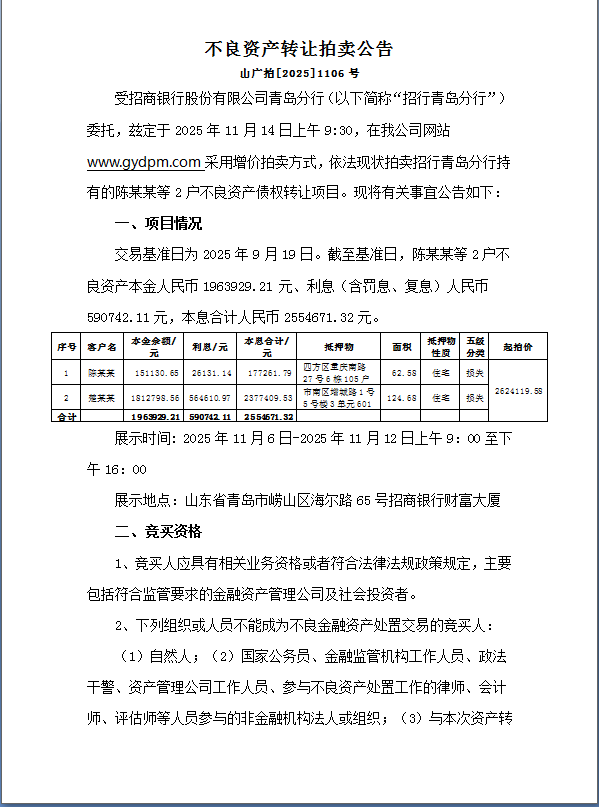 1#招行青岛分行持有的陈某某等2户不良资产债权